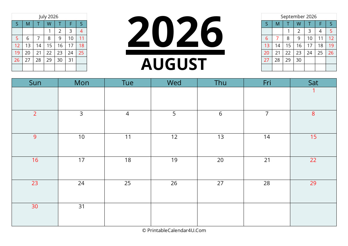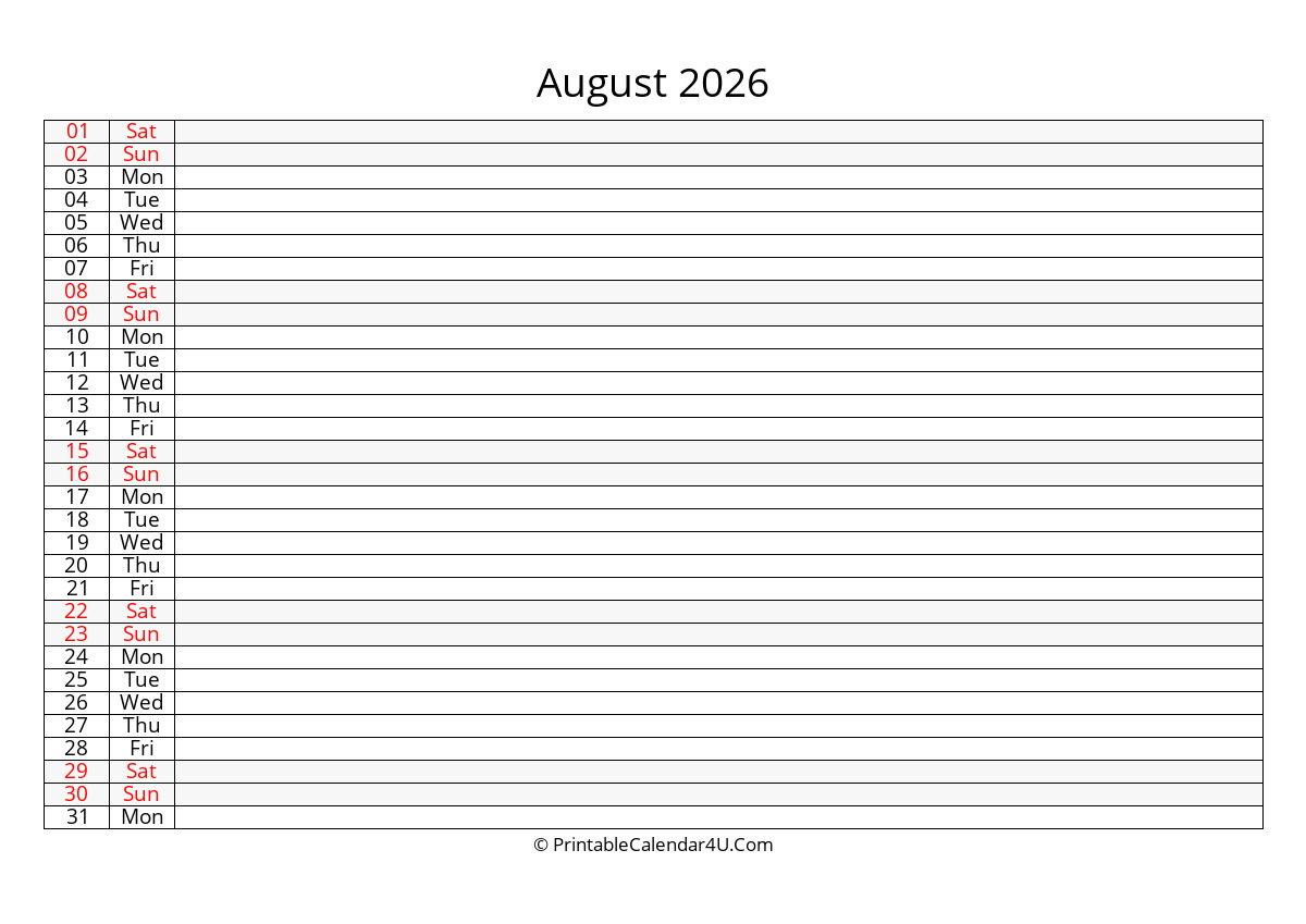 A good August 2026 Calendar that’s coming with a horizontal orientation is very good and innovative. It can help you manage your meals, schedule and everything you need.