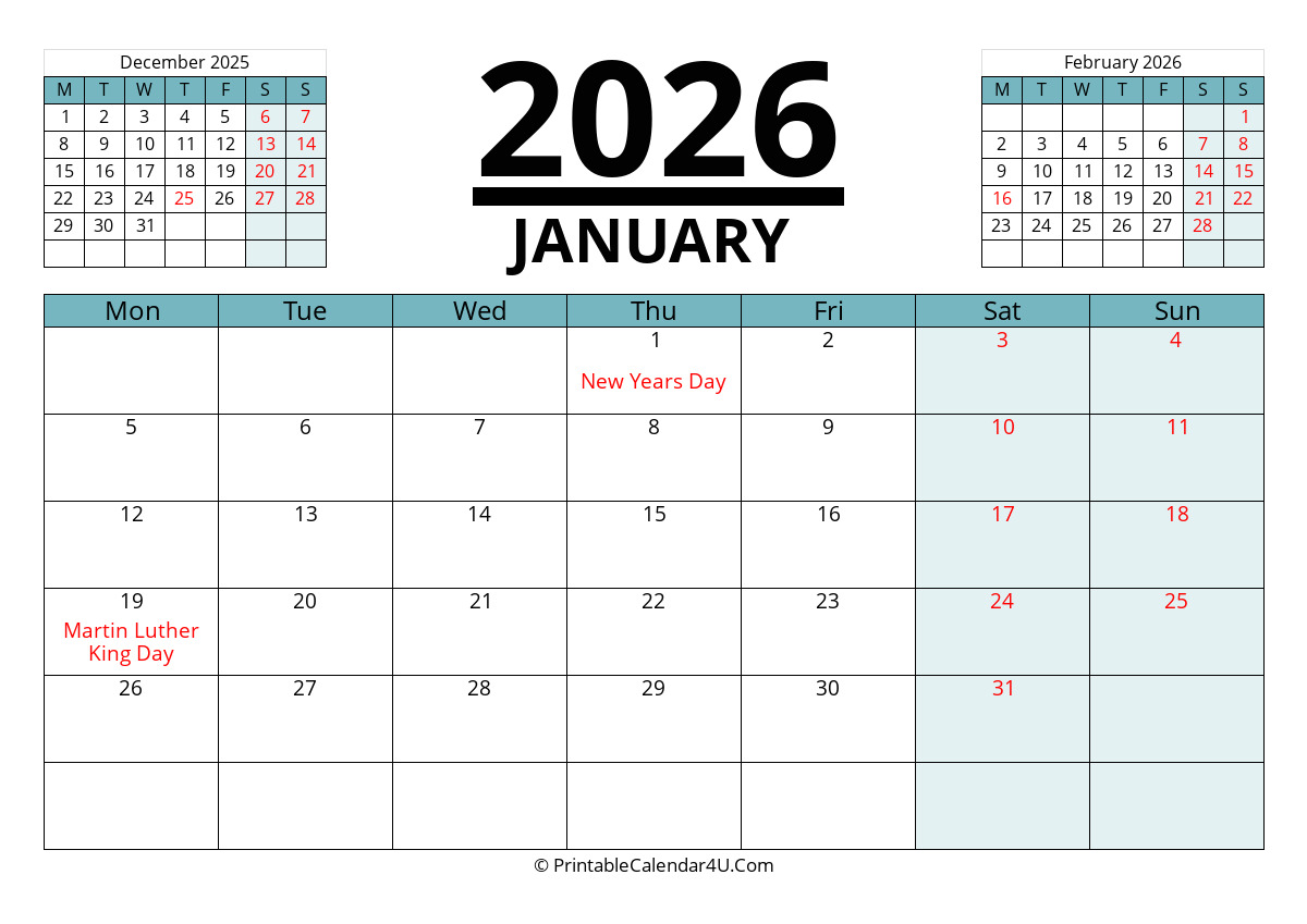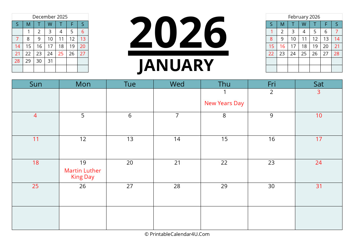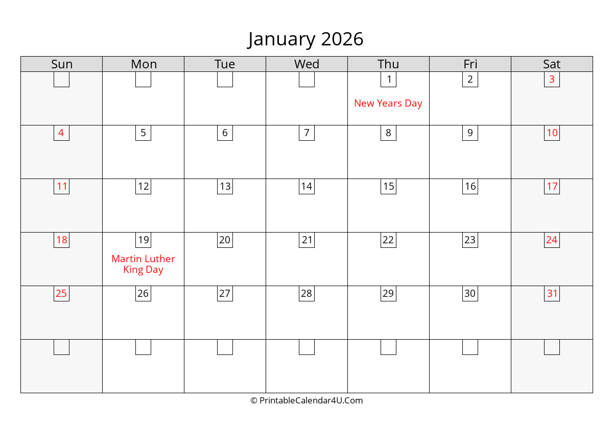 If you want to highlight certain events on your 2026 January Calendar, we have that covered. This template is really easy to print and you can adapt it to your needs too.