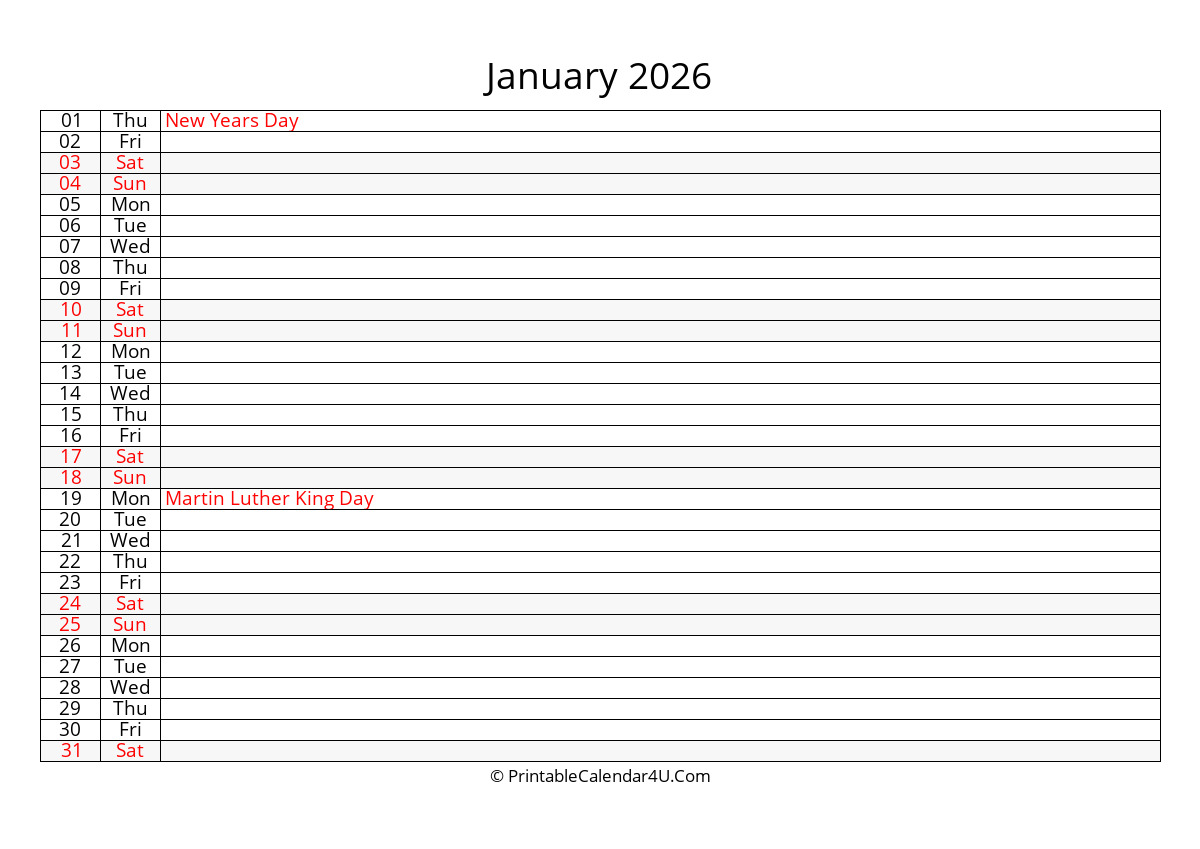 With this Printable Monthly Calendar includes January Holidays, you can plan the month ahead of time. You can organize your week-by-week activities and see the big picture of your life in one glance. This can be helpful if you have a busy schedule.