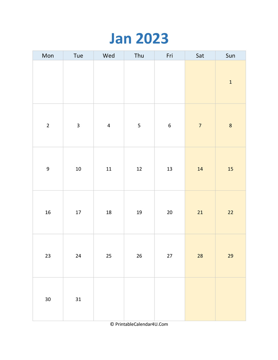 Here’s our list of free January 2023 Calendar Templates for you. Get your free Monthly Calendar for 2023 and start planning your goals and activities. Each calendar is available in Sunday and Monday start version. You may download it as Word, Excel or PDF file, the links are below of each preview image.