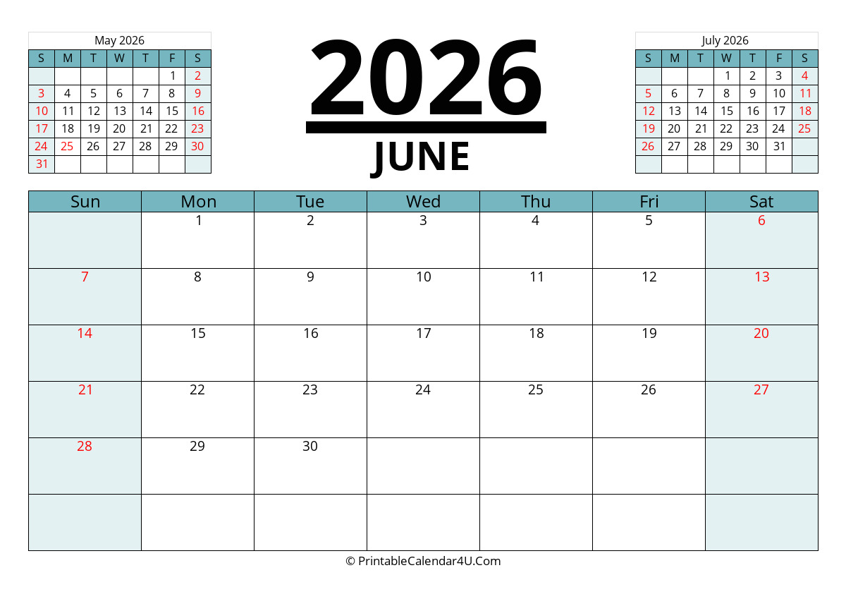 2026 June Calendars