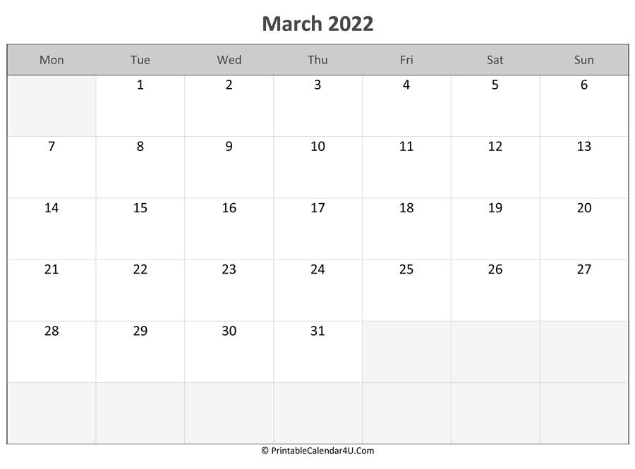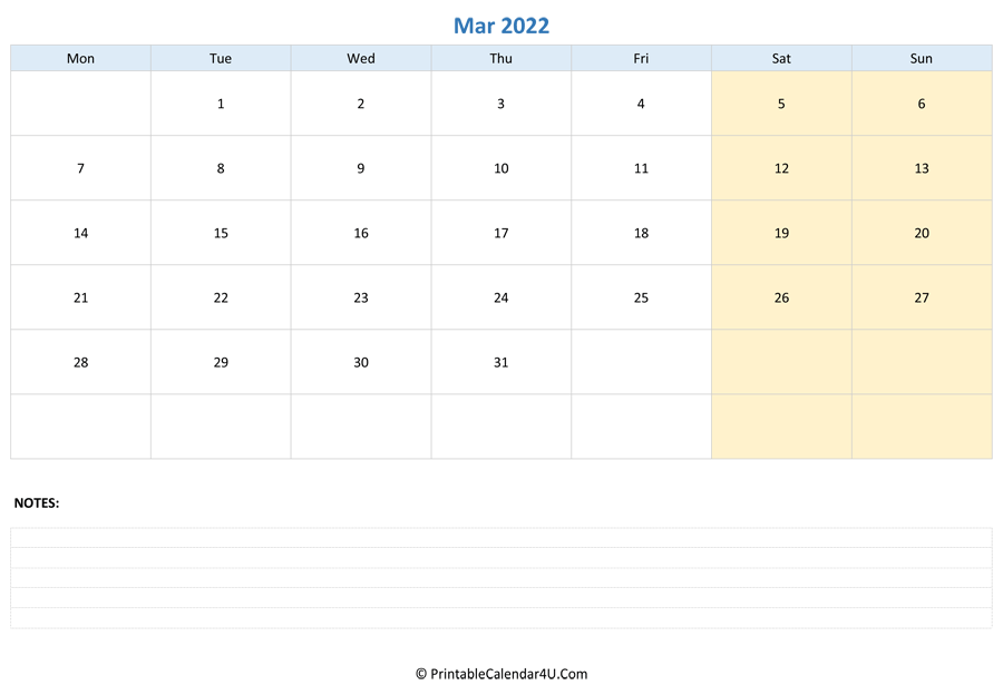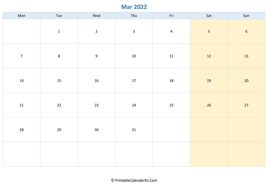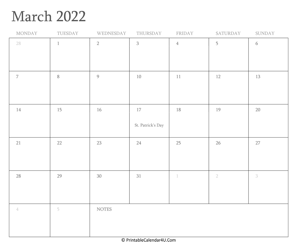 Here you can download our March 2022 Calendar Templates for FREE. With so many things going on March 2022 you’ll need a calendar to help you keep it all straight so nothing gets missed! Choose a Sunday start or Monday start calendar and get your free Word, Excel or PDF file.