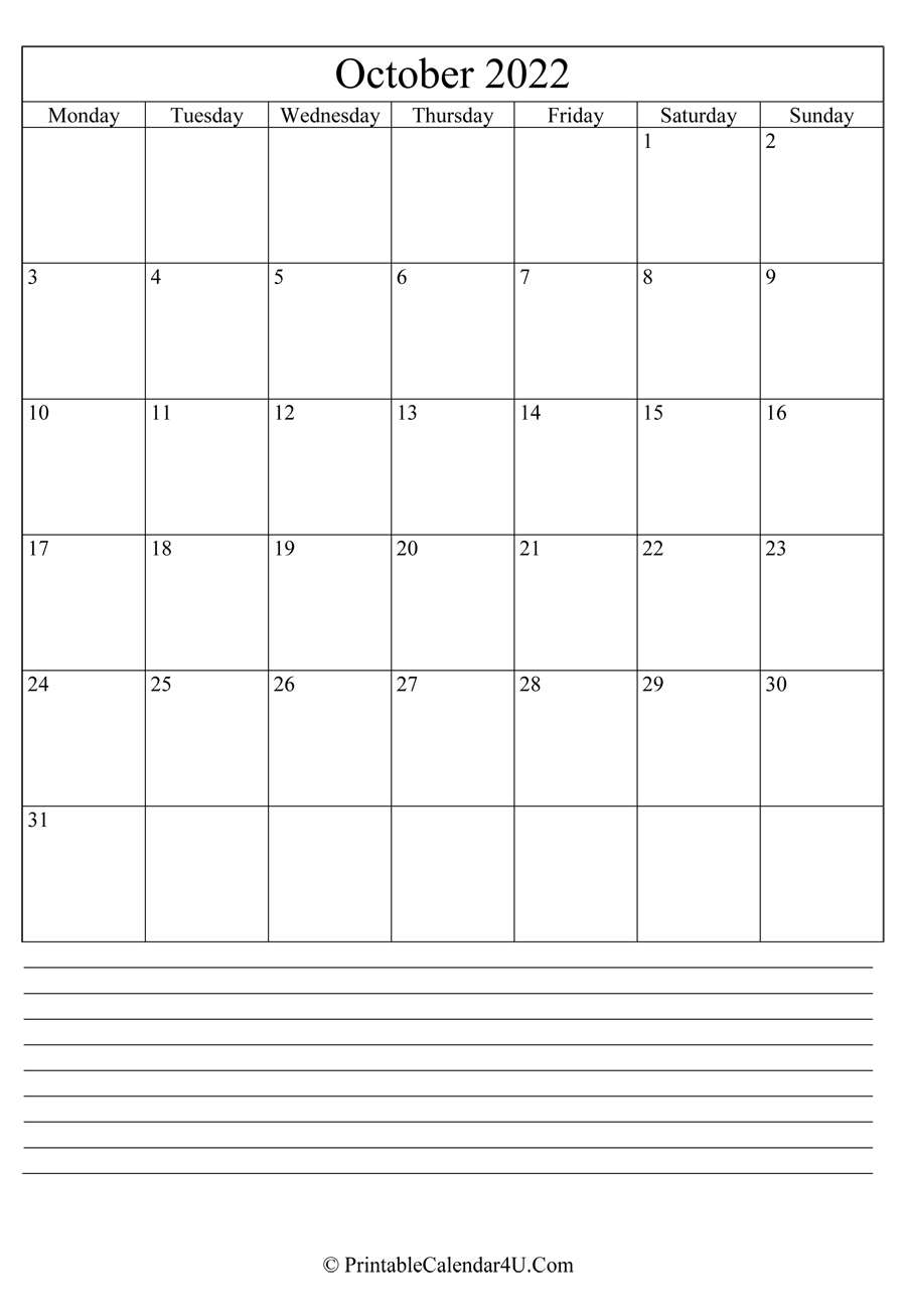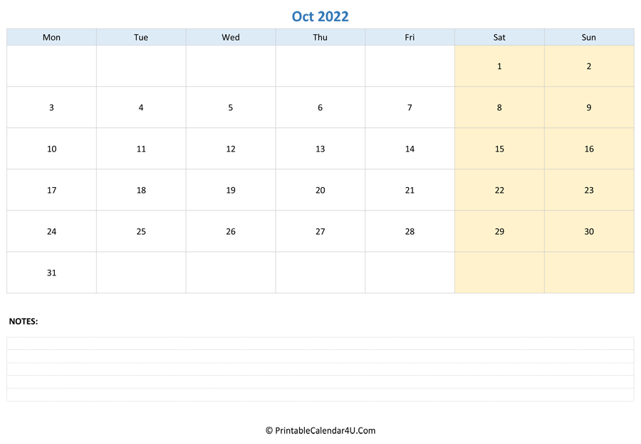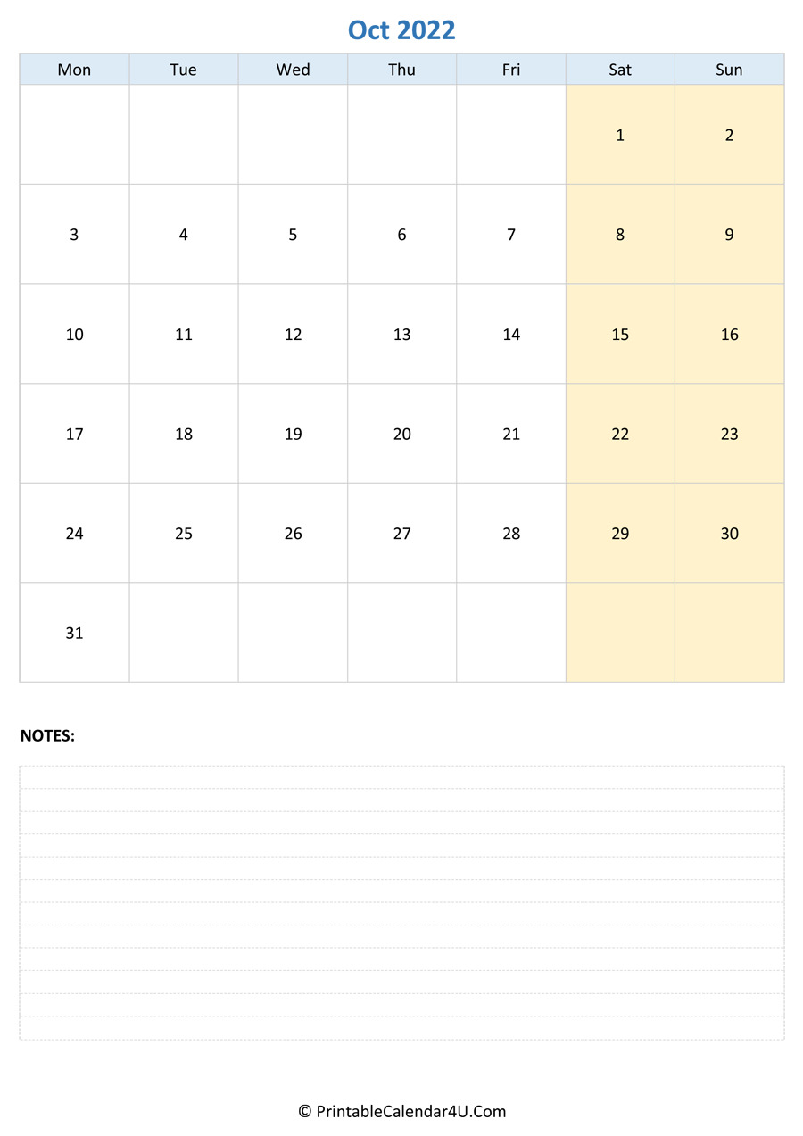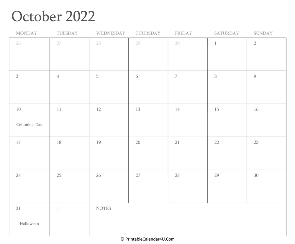 Use our Printable October 2022 Calendars to organize your schedules. We have them in various styles and formats to suit your needs. Get your favorite October Calendar 2022 and start planning a wonderful month now!